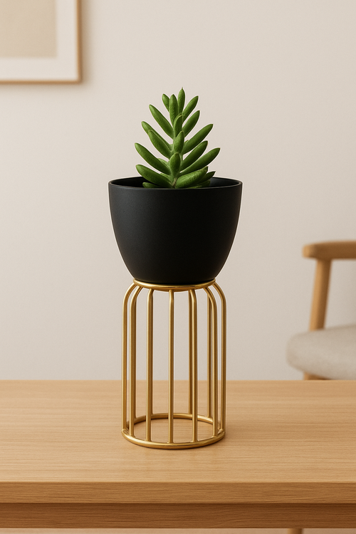 MEDIUM GOLDEN CAGED BLACK PLANTER -